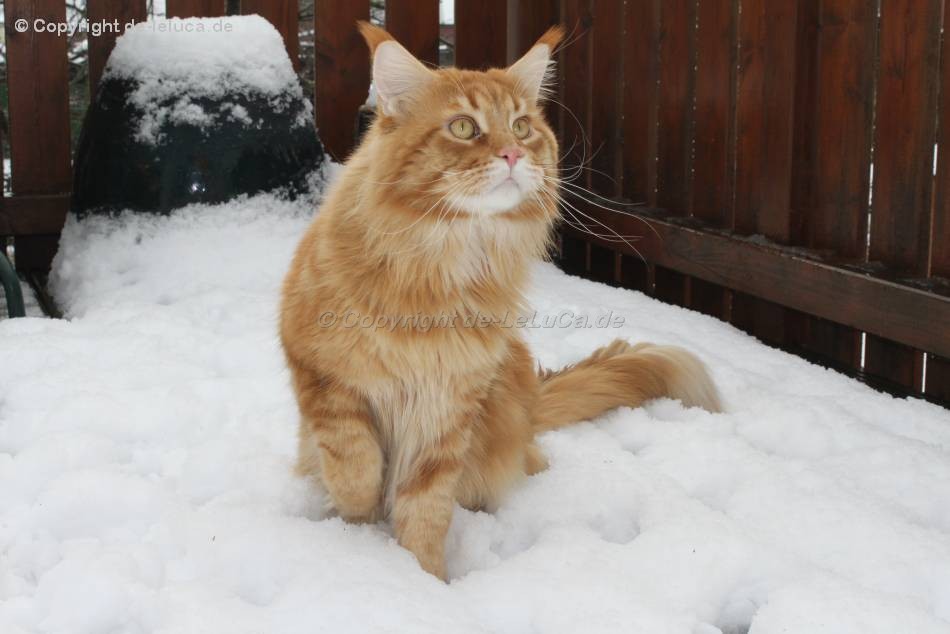 Coon Kater bekommt kalte Füße, wenn er zu lange im